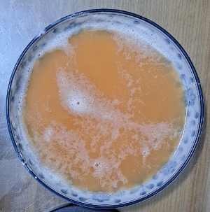 4) 갈린 감자를 면포에 싸서 물기를 짜줍니다. 그릇에 담아보면 물과 전분을 분리할 수 있고 물만 버려줍니다.