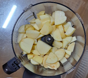 3) 믹서기에 감자를 넣고 감자가 잠길 정도로 물을 부어준 후 갈아줍니다.