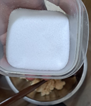 6) 소금으로 간을 하고 반죽을 만들어 줍니다.